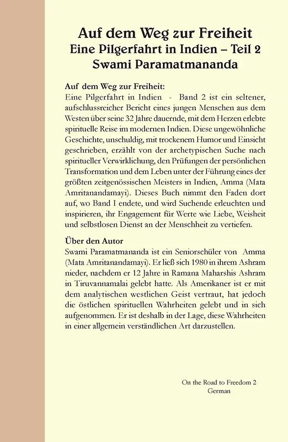 Eine Pilgerreise in Indien von Swami Paramatmananda (II) Dieses Buch nimmt den Faden dort auf, wo Band I endet, und wird Suchende erleuchten und inspirieren, ihr Engagement für Werte wie Liebe, Weisheit und selbstlosen Dienst an der Menschheit zu vertiefen. Herrlich zu lesen und mit viel Humor geschrieben. Paperback, 283 Seiten